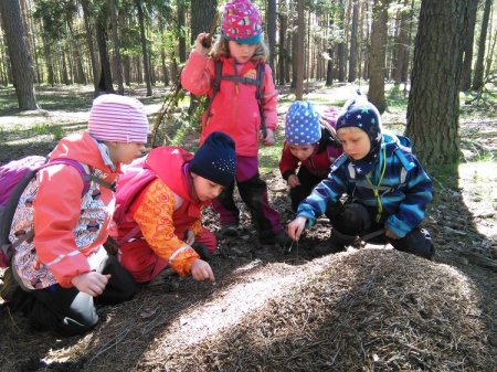 „Aby bylo prostředí naší školky co nejbezpečnější, máme s dětmi dohodnutá pravidla pro pohyb na zahradě a v lese. Pokud se tyto pravidla dodržují, žádné nebezpečí pro děti nehrozí,“ říká Monika. „Uvedu příklad. Pro pohyb v lese máme nejdůležitější pravidlo, že jsme na dohled a na doslech. Po cestě máme čekací místa, kde na sebe vždy čekáme, společně se tam sejdeme a až pak vyrážíme dál.“